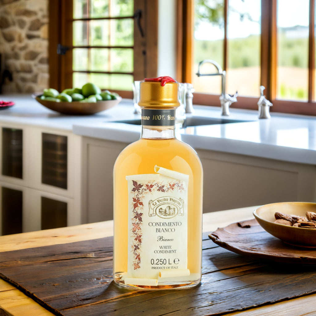 Dieser Condimento Bianco Balsamessig wird aus ausgewähltem, weißen Traubenmost gewonnen.