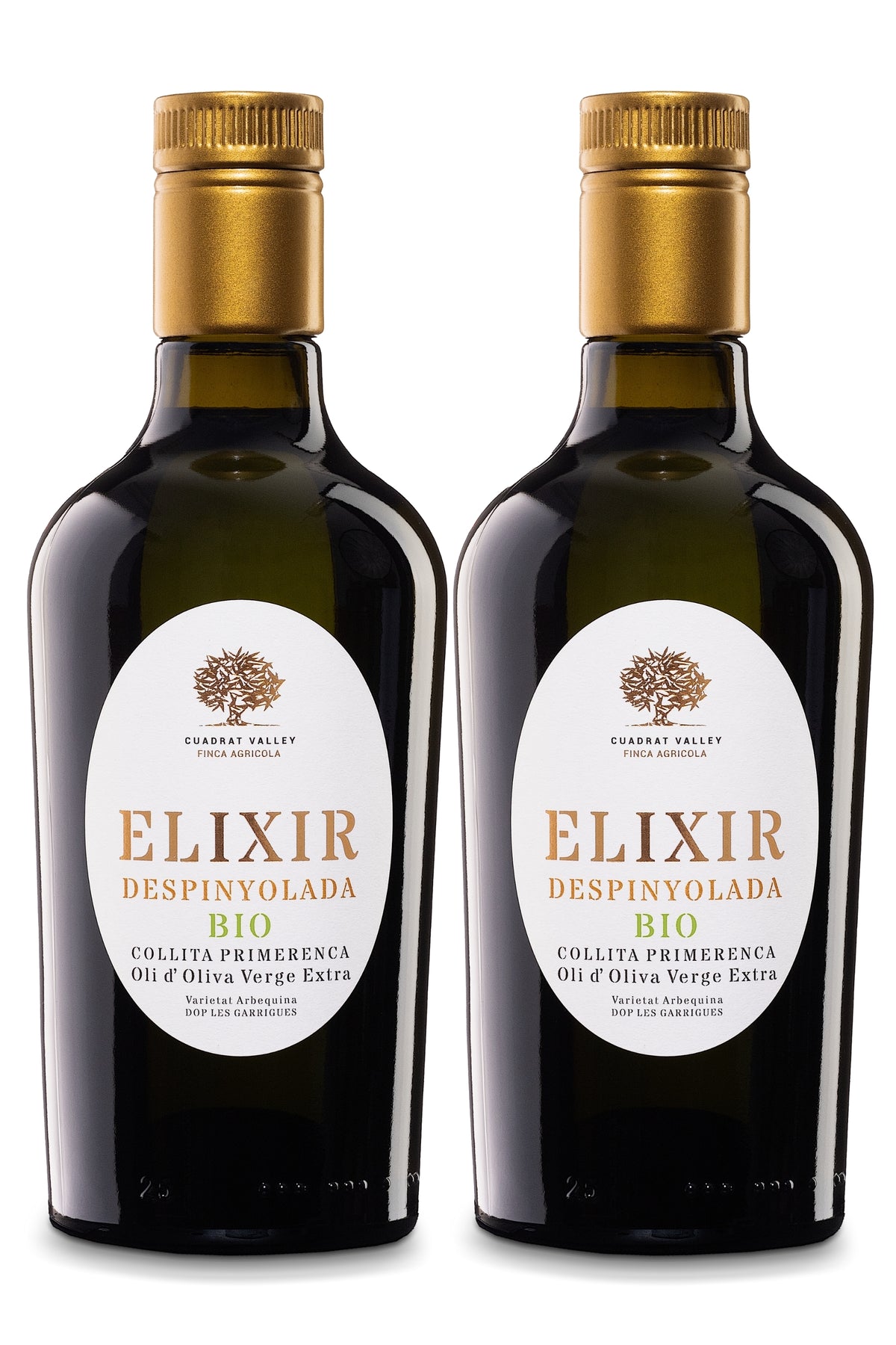 Elixir Bio Despinyolada ist ein außergewöhnliches Olivenöl aus 100 % Arbequina-Oliven, extrem früh geerntet und auf eine Weise verarbeitet, die selbst unter Profis Seltenheitswert hat: Die Oliven wurden vor dem Pressen entkernt.